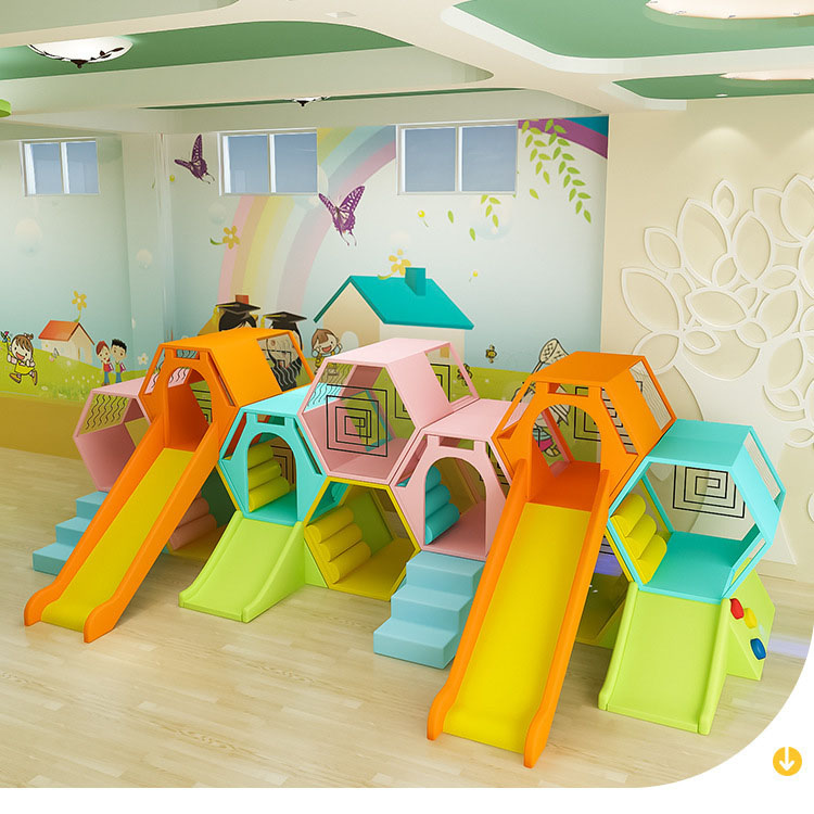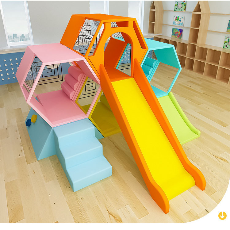 مجموعة اللعب بخلايا النحل الملونة هذه هي ابتكار لعبة ألغاز ومصنوعة من الفوم عالي الكثافة ومغلفة بالبلاستيك أو الفينيل. ميزة يحبها الأطفال الصغار وهي التسلق والانزلاق والزحف. تشير الشريحة الملونة إلى تعدد استخدامات خلايا النحل هذه، والتي غالبًا ما تكون نقطة الانطلاق لمغامرات مثيرة أو نشاط يومي. كل خلية متصلة ببعضها البعض عن طريق سلالم إلى المنصة العلوية للخلية، ويمكن للأطفال استكشاف خلايا النحل عن طريق السلالم أو تسلق الصخور. مصممة لتعزيز تنمية المهارات الحركية الإجمالية للأطفال. موصى بها للأطفال من عمر 18 شهرًا إلى 3 سنوات فهي تتميز بارتفاعات صغيرة ولمسات ناعمة وخامات مقاومة للعض، بالإضافة إلى أنها مضادة للبكتيريا.